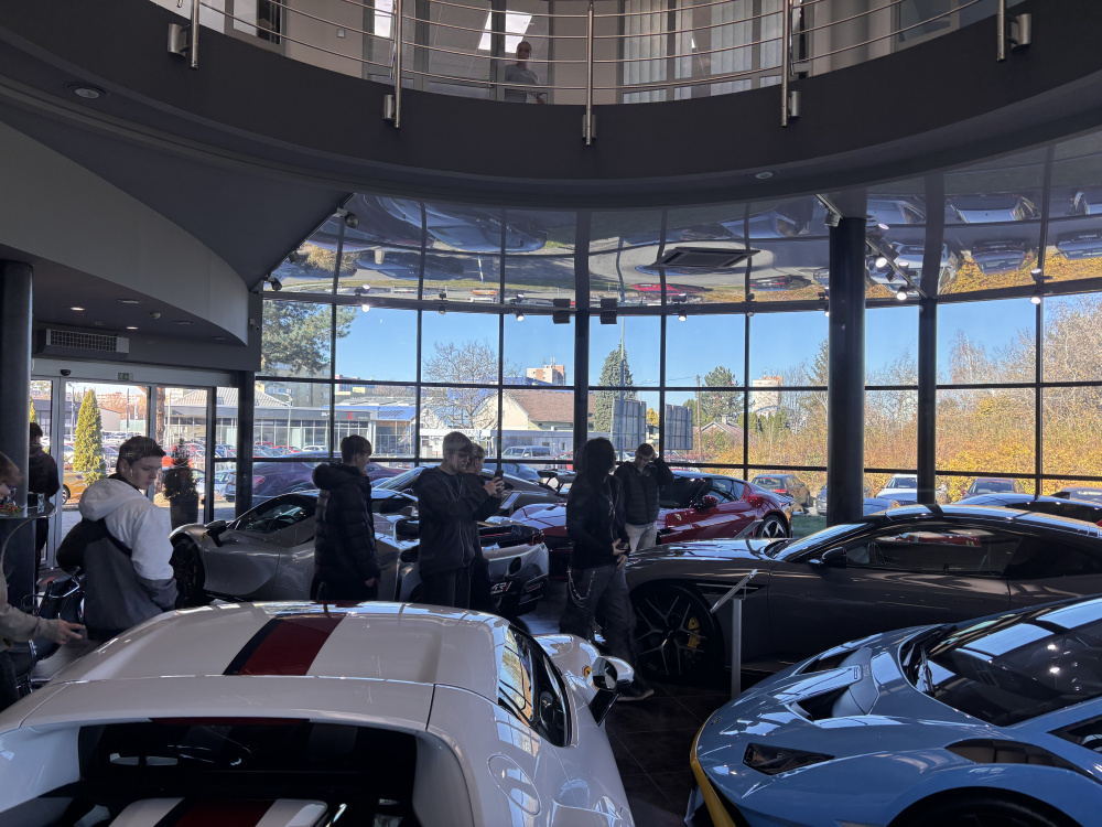 Zlatým hřebem byla prohlídka salonu s luxusními a sportovními automobily, kde se žáci ocitli