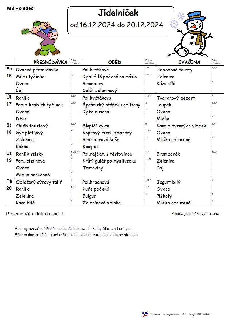 Jídelní lístek 16.12 - 20.12