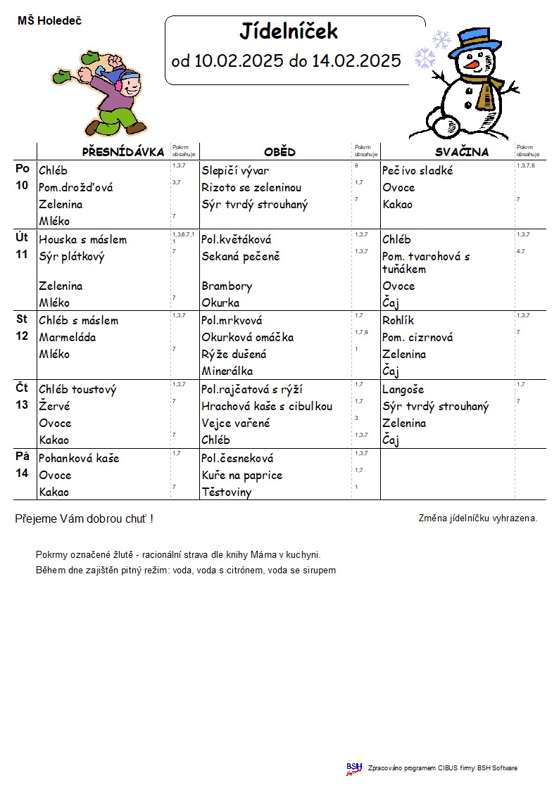 Jídelní lístek 10.2 - 14.2.2025