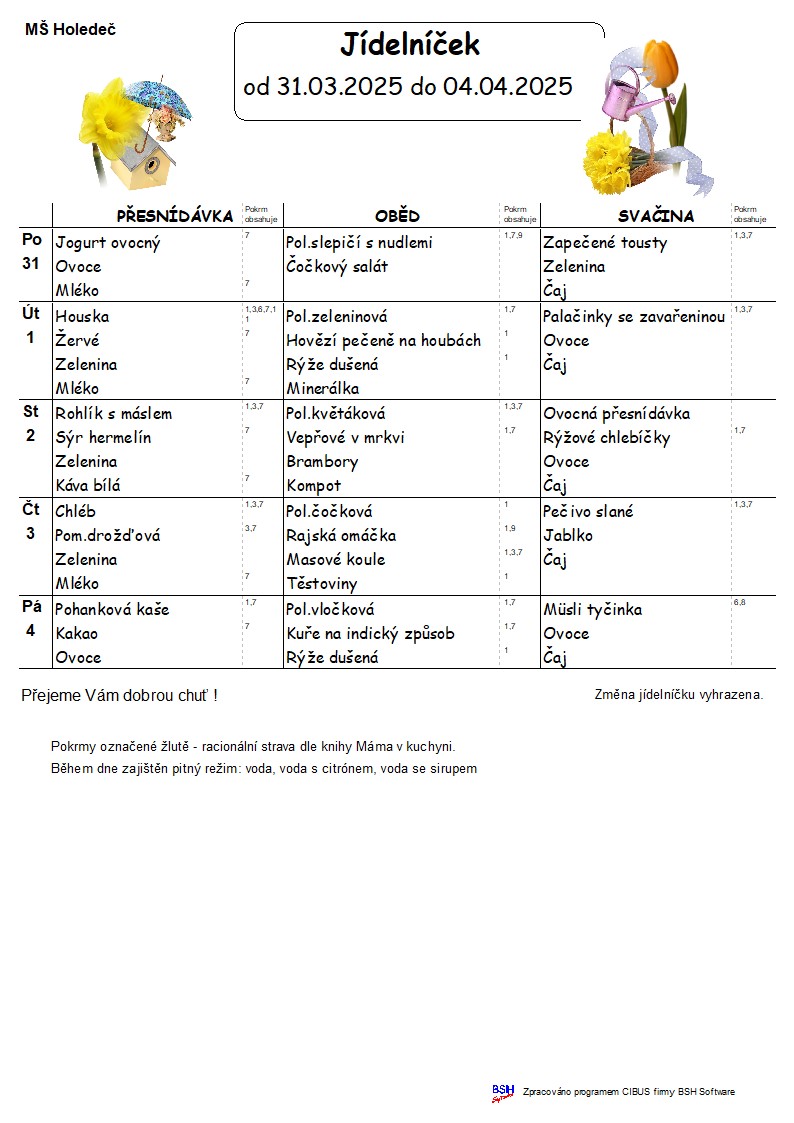 Jídelní lístek 31.3 - 4.4.2025