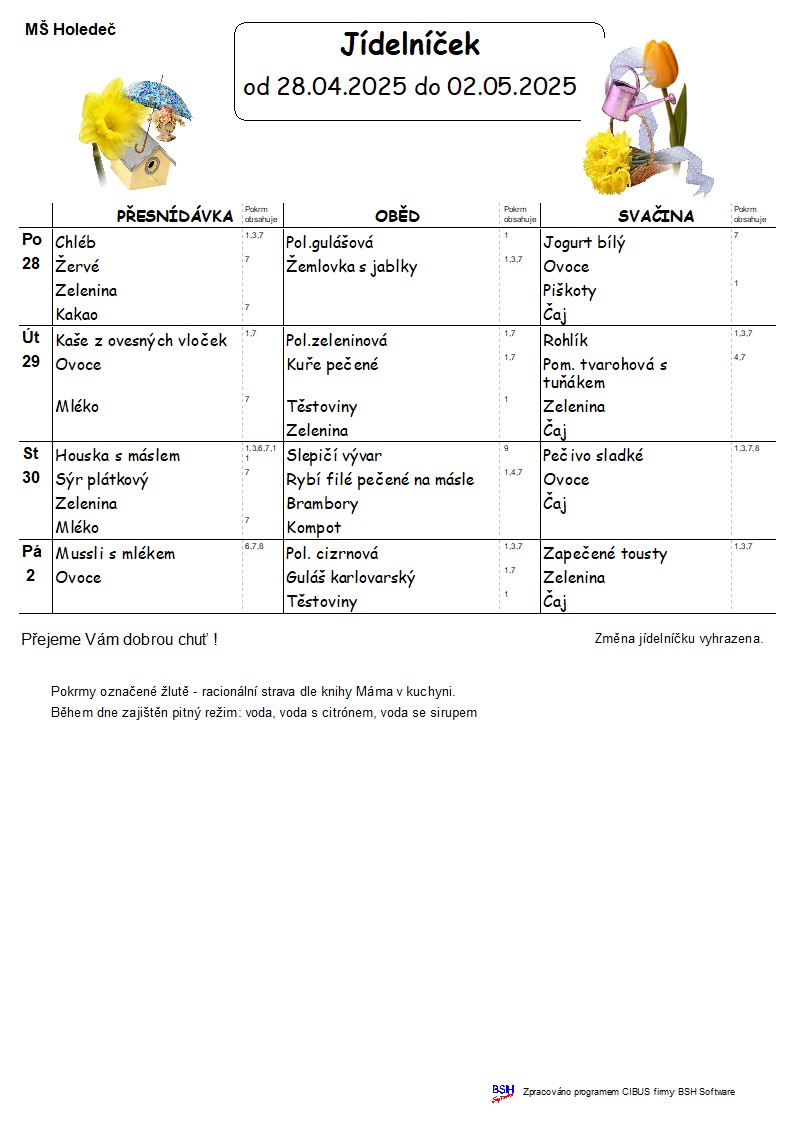 Jídelní lístek 28.4 - 2.5