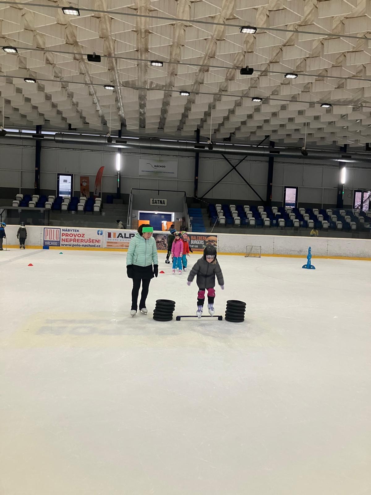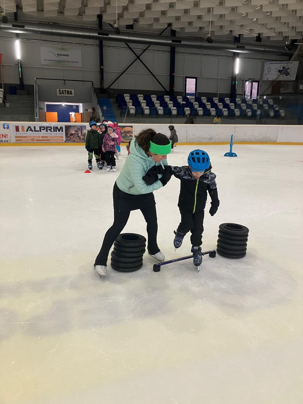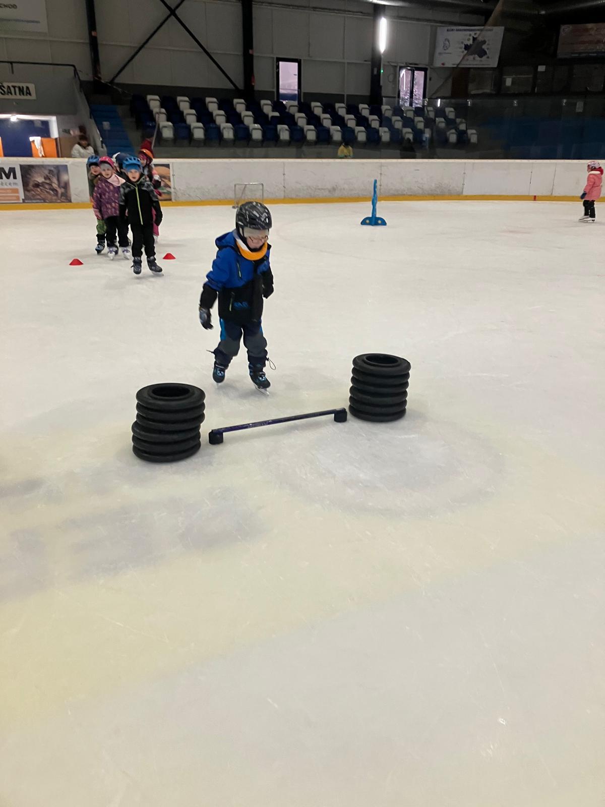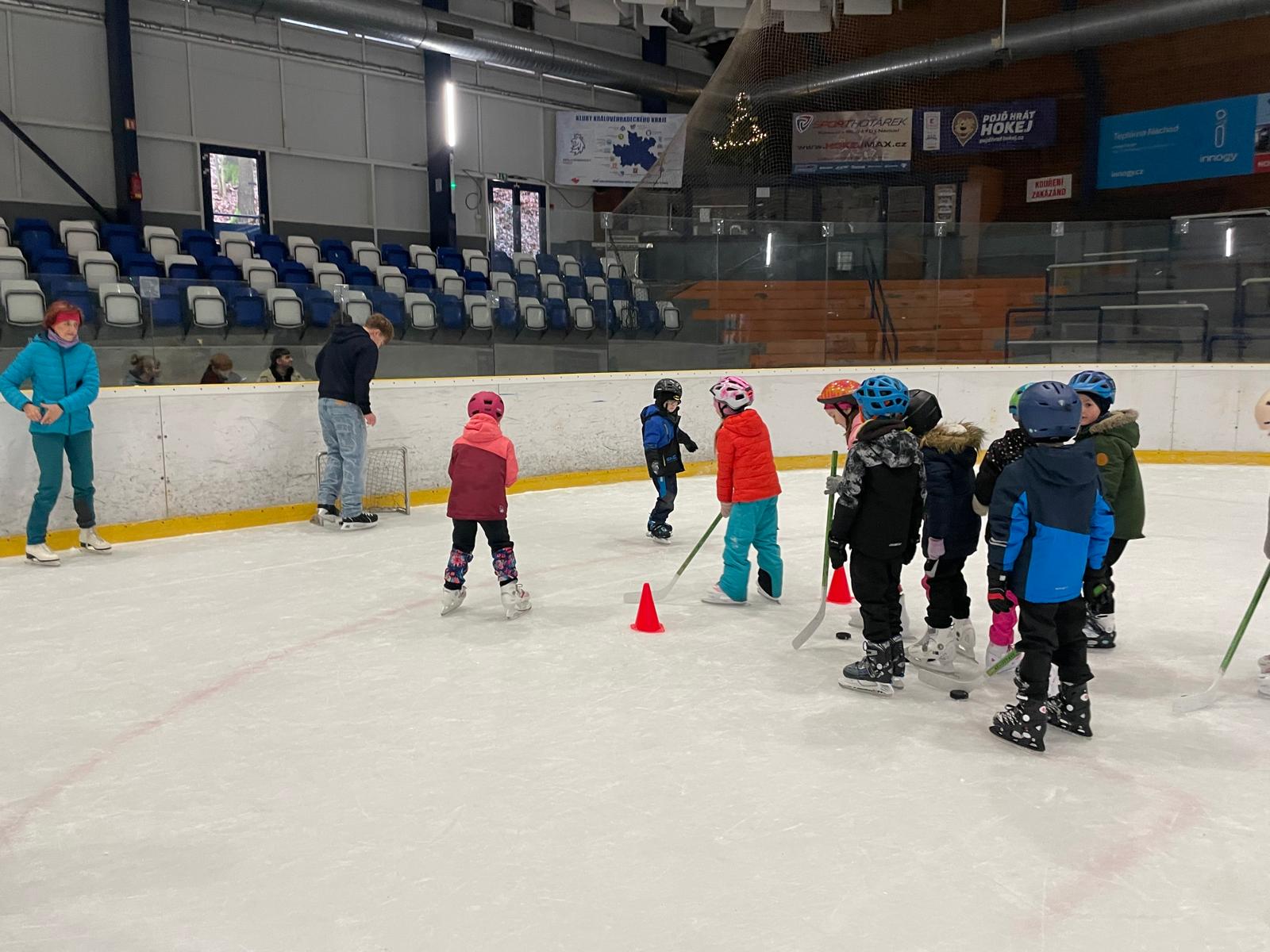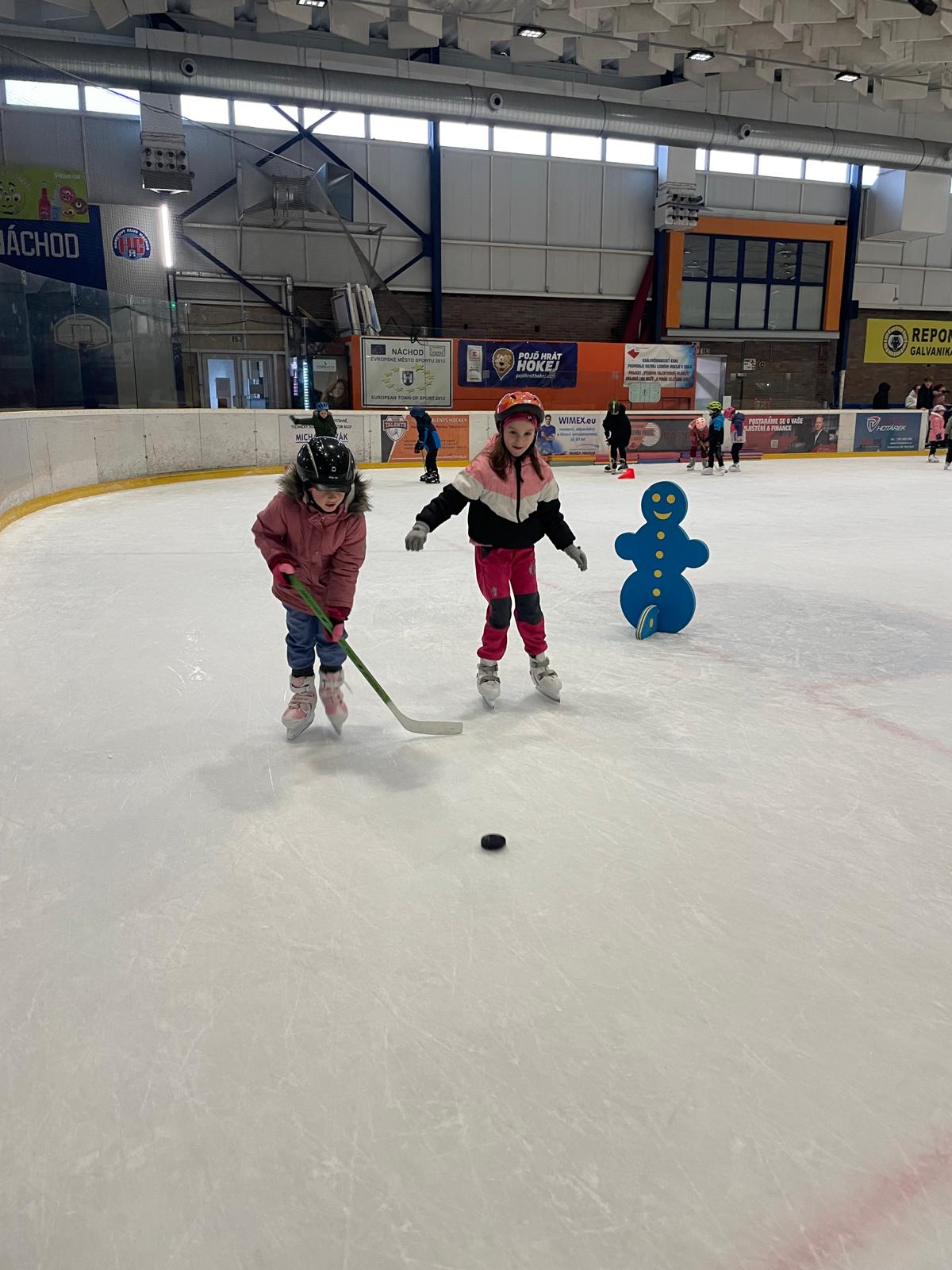 Bruslení - hokej, vedení puku, nahrávky, překážky.