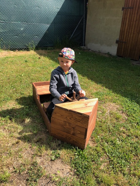 Na zahradě a pod novou pergolou.
