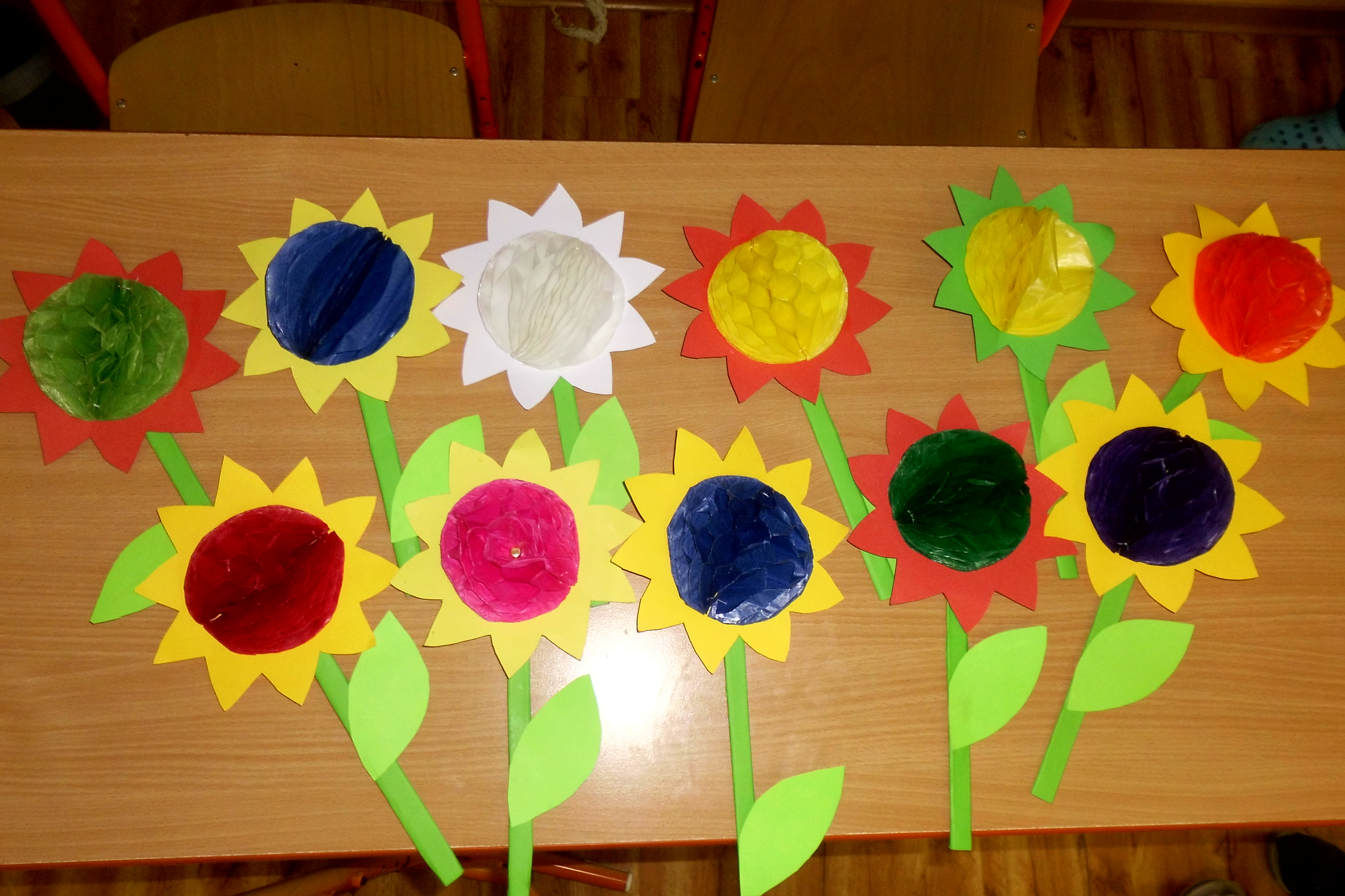 Vyráběli jsme květinu se skládaným středem.